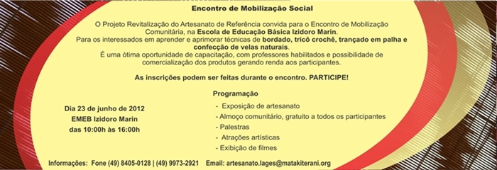 A Associação Cultural Matakiterani no dia 23 de junho de 2012 lança na oficialmente o Projeto Revitalização do Artesanato de Referência do Planalto Serrano de Santa Catarina. Uma iniciativa aprovada no Fundo Socioambiental Caixa, Programa Caixa ODM de 2001 e que teve suas atividades iniciadas em abril de 2012. O primeiro trimestre das ações culmina com o Encontro de Mobilização Comunitária, que tem o objetivo de apresentar o projeto e abrir inscrições das oficinas de artesanato para a comunidade.