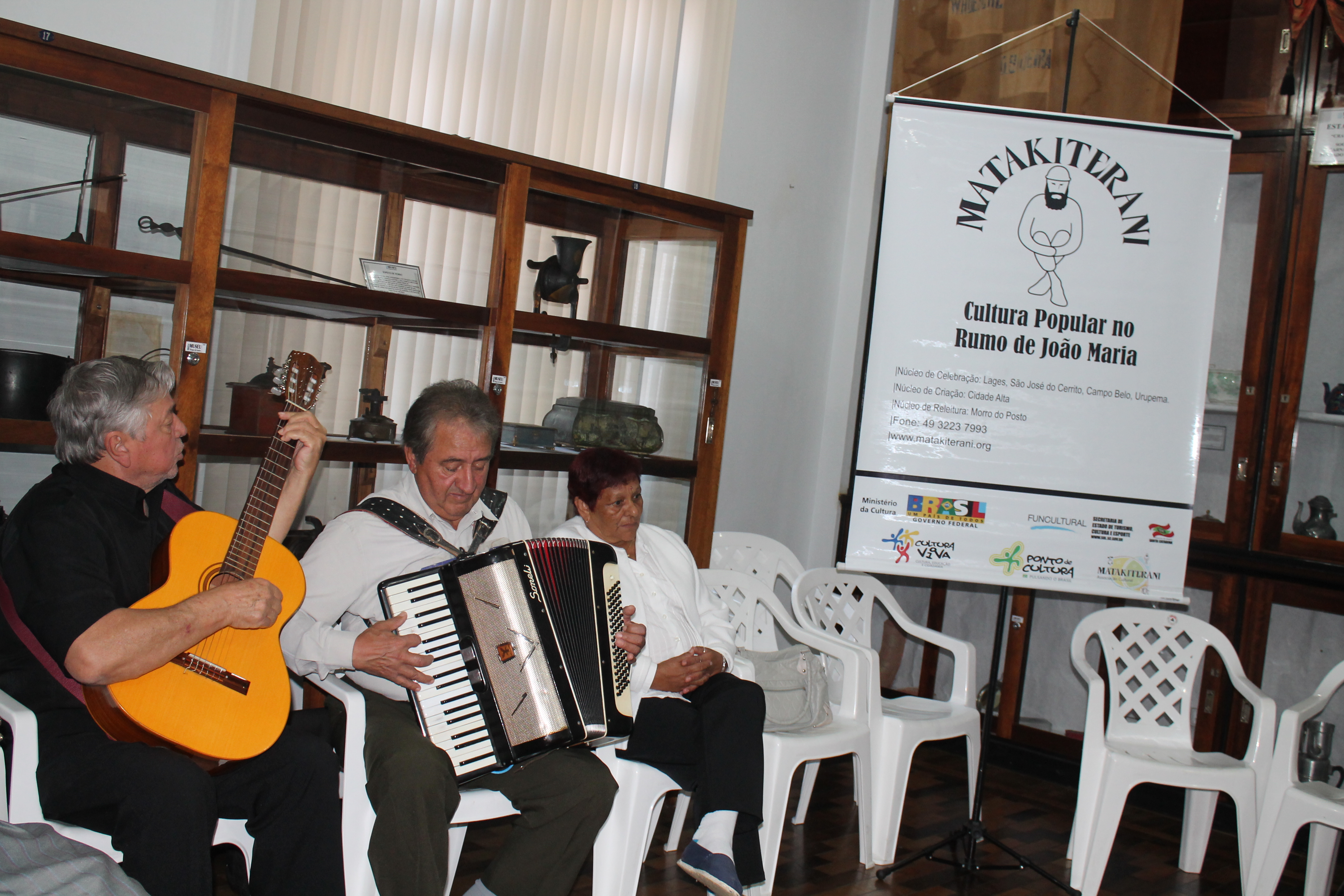 Violão, acordeon e a voz dos compositores, musicistas, trovadores, Dinart Nunes, Zé da Serra e Bruno Antunes contribuíram na realização das Rodas de Causos no Museu Thiago de Castro numa promoção da Associação Matakiterani